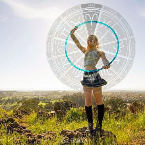 Bold colors and a brilliant scenery are what bring this day hooping shot to life. The artistic representation of the zodiac signs places a bright aura on the subject of this photo, Autumn Skye. The photographer, Visual Fragments has a cunning way of utilizing natural light in photography I can feel the peaceful zen of Aries in this photo. Wouldn’t it be fun to see a calendar of various hooping photos like this capturing each zodiac sign and the hooper disposition representing that sign?:-)