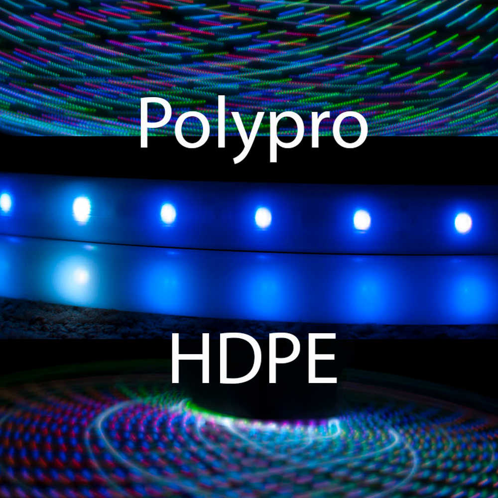 We recommend HDPE tubing as the default option for LED hoops. Since LED hoops have batteries and weighted internals, the lightness of polypro is not as noticeable from an HDPE LED hoop made in the same size. HDPE tubing is naturally a more flexible material and absorbs impacts well. (scroll to the bottom of the page to see a picture comparison)
