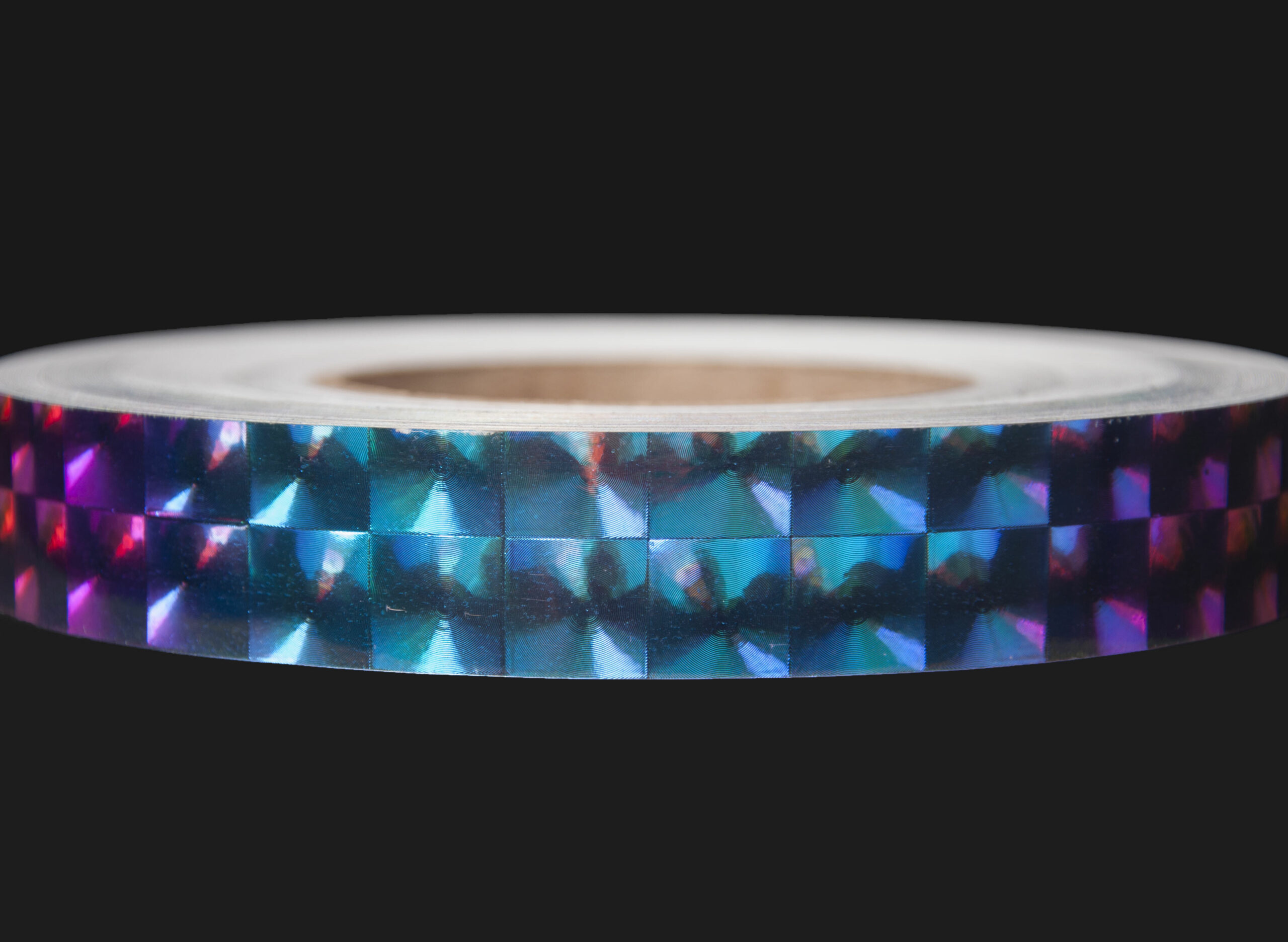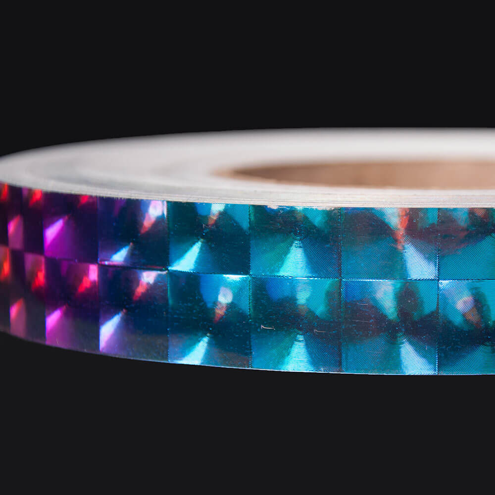 The Caribbean Fire Opal holographic surface reflects aquamarine, sea green, magenta, and indigo purple from its depths. The dimensional tape fluidly reflects undulating aquatic colors and is truly captivating.