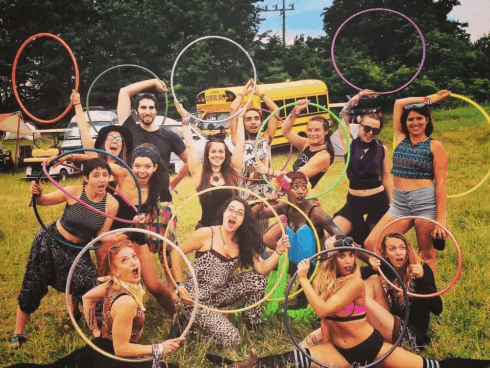 Anna’s hula hoop journey began in January 2014 when she was inspired to pick up the hoop after seeing a fellow festival-goer flowing at Bonnaroo the summer before. After her first spin, she quickly became obsessed. Her job at the time as a massage therapist allowed her extra free time to dedicate to her practice, hooping for hours daily. She watched YouTube tutorials, flow videos, and anything she could get her hands on to learn more about hooping. This new way of movement quickly turned into a passion. When traveling hoop instructors came into town, she would always try to attend, meeting local hoopers and learning new tricks.