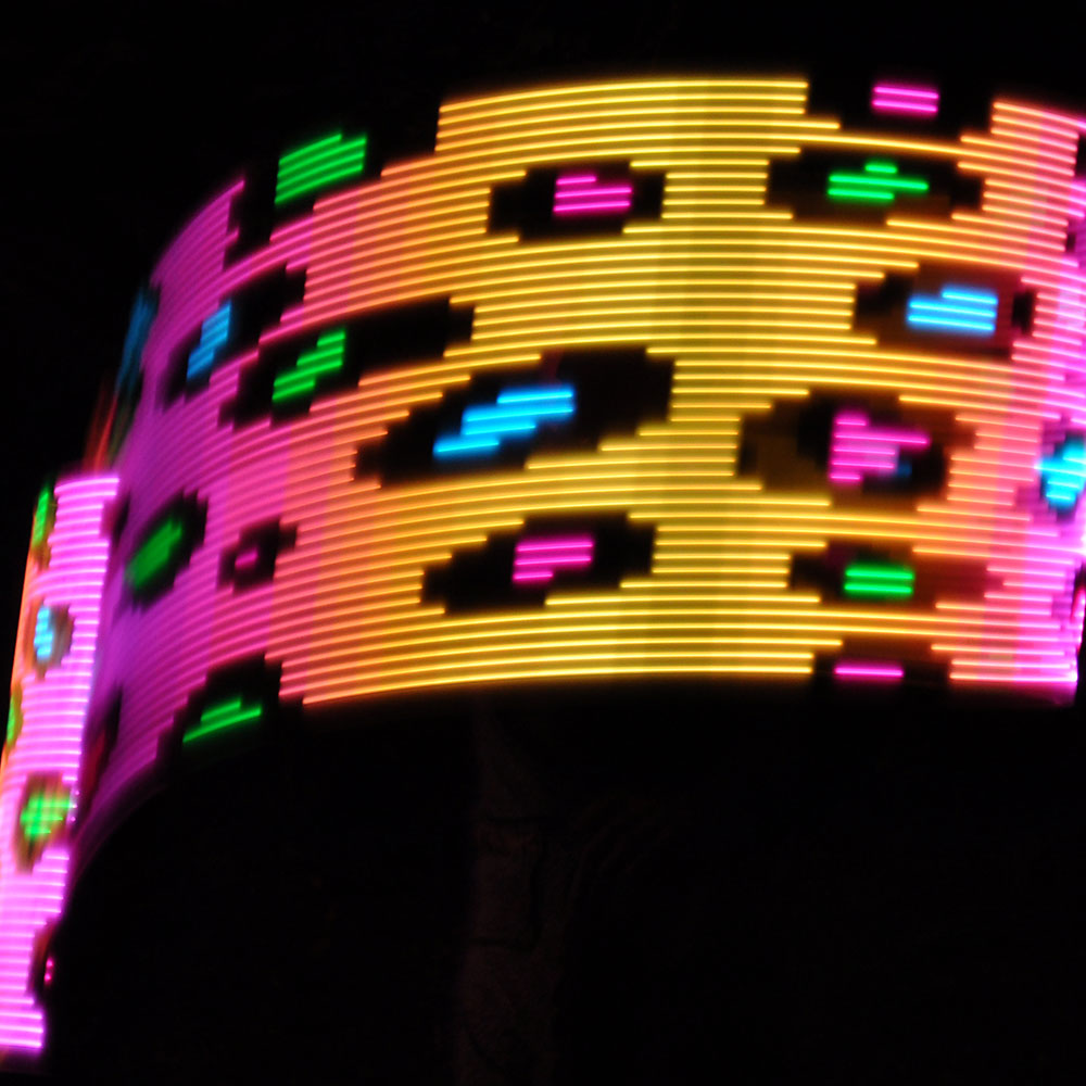 - Motifs (blinks pink) – Inspired by traditional art motifs with a splash of 8-bit iconography. Dynamic colors and effects layer to create endless variations and unbelievable trails in lush color palettes.
