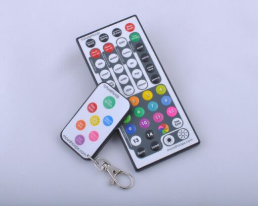 The interactive 44-key remote control gives you complete access to color banks, pattern layers, timing changes, spiral controls, brightness, and your saved patterns. Create and save up to 14 different patterns, then use the Tap Tempo button to change patterns in time to a beat. With the 44-key remote you can create custom color palettes, change chaser modes on the fly, melt galaxy effects, save your favorites, add or remove layers, cue changes in time to a beat, synchronize and much more.