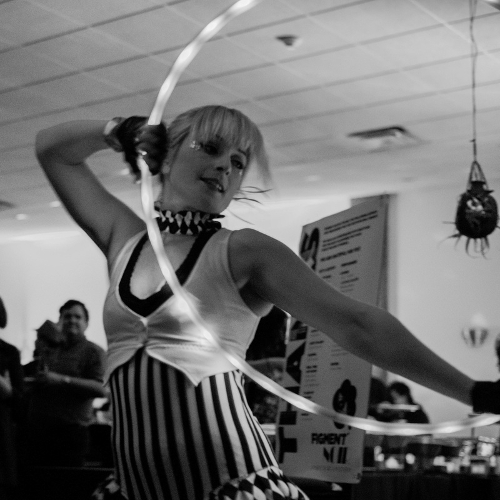 Today, she dazzles crowds internationally both as a solo artist and in collaboration with a number of performance troupes including Boston Circus Guild, Boston Hoop Troop, and Luminous Fire & Flow. She seeks to inspire others to explore the act of play and find empowerment through radical self-expression and artistic liberation.