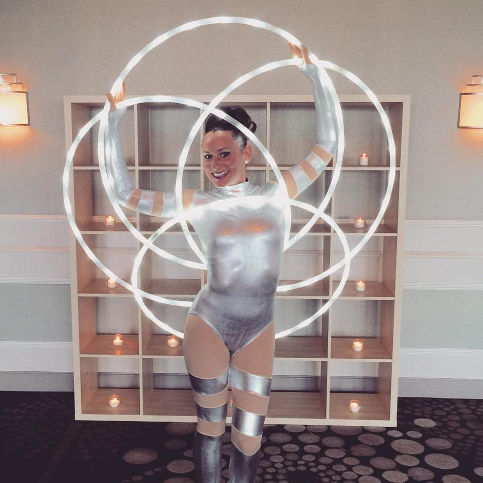Ali offers a one of a kind hoop dance act that brings a totally different and vibrant energy to the table! From nose hooping to multi-hooping from head to toe! Ali has proper fire safety training & is an experienced Fire & LED hooper for over the last 6 years. Equipped with the highest quality props and safety materials, taking all precautions in making sure her surroundings are safe for both her and the audience!