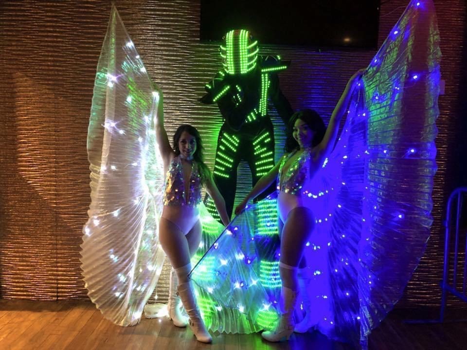 Hula hoops, dragonstaff, levi wand, fans, silk fans, and fire.