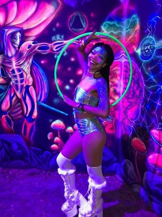 Aurahoops, aka Ally Bourne, is a specialty performance artist based in Denver, Colorado. She discovered hula