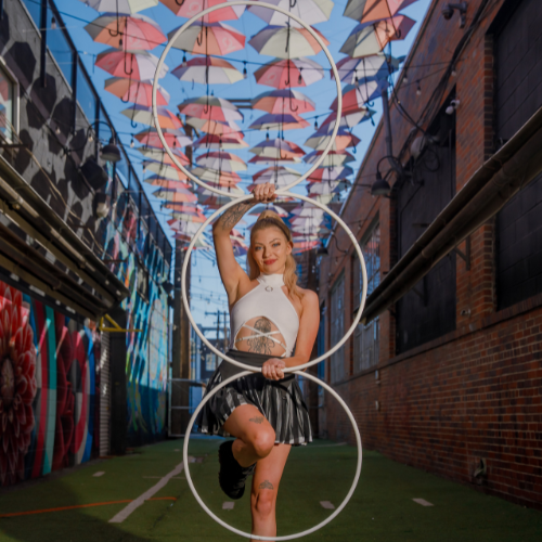 Allieflowz (aka @cirqueduallie online) is a Denver-based flow artist whose journey began with a single hoop back in 2018 and grew into a passion for circus and flow arts as a whole. Hula hooping was the first time that she felt she could actually dance and it sparked a sense of confidence and excitement. Movement arts have given her a healthy outlet for expression and she believes in its ability to promote wellbeing and reduce anxiety. When she's not flowing, she is a full-time student and fur mom to 3 fur and 2 scale babies (a cat, guinea pig, chinchilla, and crested geckos)!