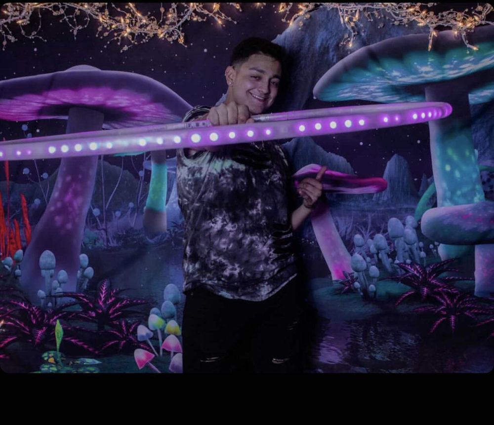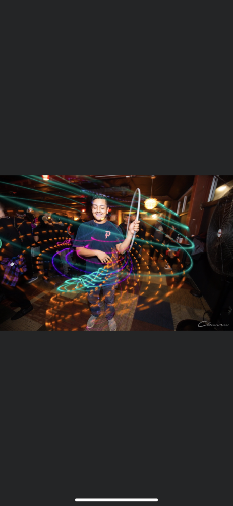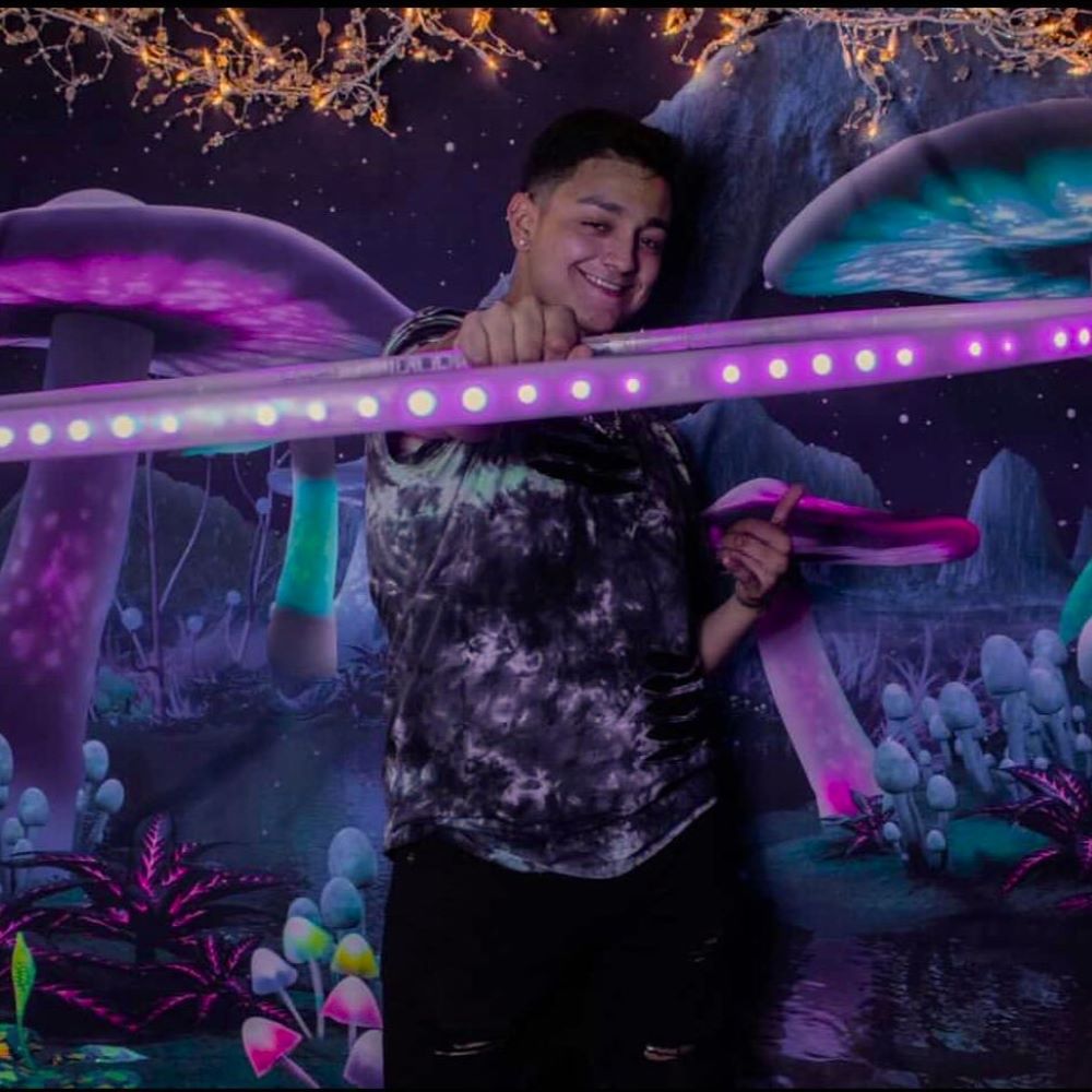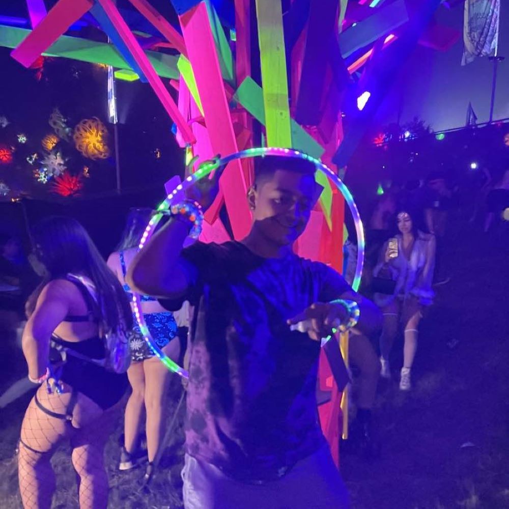 My names is Josue , and I began my flow arts journey 2 years ago in august & I was inspired by the festival community , along with my best friend Monica. The first time I picked up a LED hoop was at a high school party and the theme was “RAVE” and I noticed she had a LED hoop and was hooping at the party & ever since I saw her , we made great friends and this I knew off the bat that this was something I was interested in . And the more and more I picked up the hoop I found a passion for it.