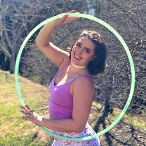 Anna's hula hoop journey started in 2014. She started teaching in 2017 and has taught and performed at hoop retreats across the world, sharing joy through Instagram and YouTube tutorials. Hooping isn't just a hobby for Anna; it's a therapeutic practice. She cherishes every opportunity to share the love that hooping has brought into her life. In her classes, Anna aims to have fun, leaving her students with new tricks to incorporate into their own unique flow.