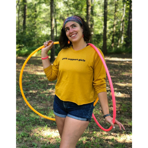 I would say if you want to get really good at it you need to practice a lot. The more you put in, the more you get out. Deanne Love on YouTube helped me a lot. I also loved watching GemGen on YouTube, she has tutorials as well. She is also the one who inspired me to make monthly progress videos. I would also suggest filming yourself. Not for others but for YOU. It is so helpful to see how you are doing tricks. The last advice I would give is don’t try to flow like someone else. The beauty of hooping is that is it you + a hula hoop. It is your unique expression that makes it so special.