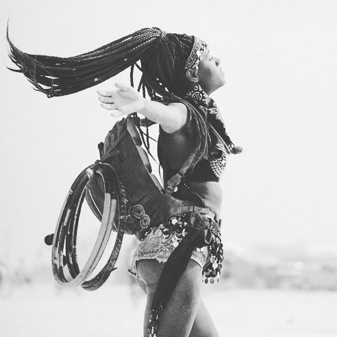 Also being a black woman in a community where there are not many people who look like me has allowed me to inspire others people of color to start hooping. I love that between myself, my troupe Nubian Spin, the Facebook page I help admin, Black Hula Hoopers Unite, and the organization Color Flow I am a part of, I am able to bring visibility to black hoopers and help diversify the flow community.